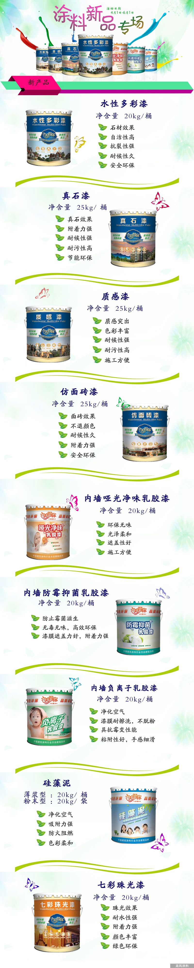 龍風美得你牌建筑涂料經過龍風涂料員工嚴格的質量把關和完善的售后服務,在秦皇島涂料市場上享有良好的口碑。其中,美得你牌真石漆、美得你牌水性多彩漆、美得你牌質感漆、美得你牌啞光凈味乳膠漆、美得牌負離子乳膠漆是最受消費者喜歡的產品。